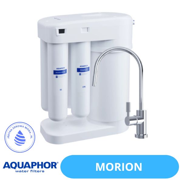 System odwróconej osmozy firmy Aquaphor model RO-101S MORION różni się od tradycyjnych systemów dostępnych na rynku, m . in. tym, iż zbiornik na oczyszczoną wodę umieszczony jest w obudowie urządzenia. MORION może pracować nawet przy niskim ciśnieniu wody w wodociągu rzędu 2 barów.